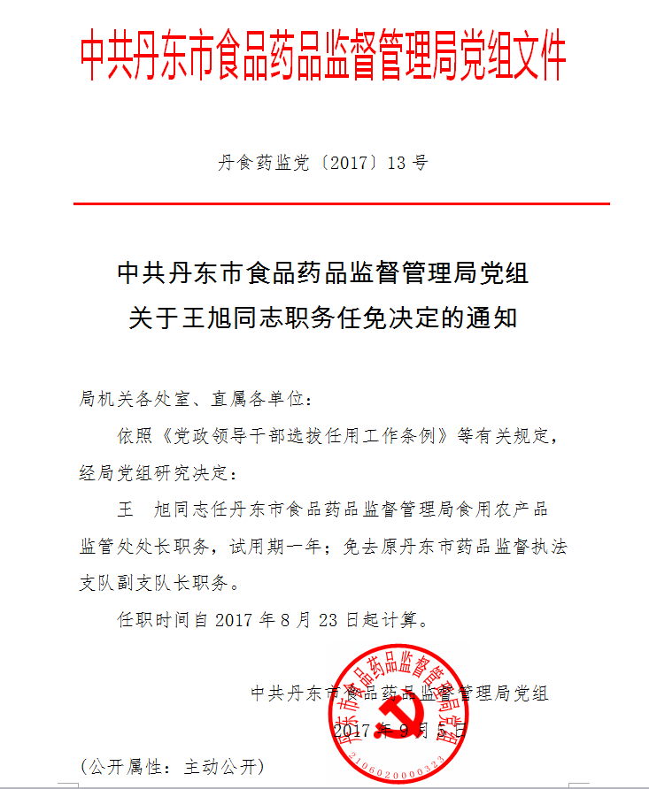 中共bet77365体育在线投注党组关于王旭同志职务任免决定的通知